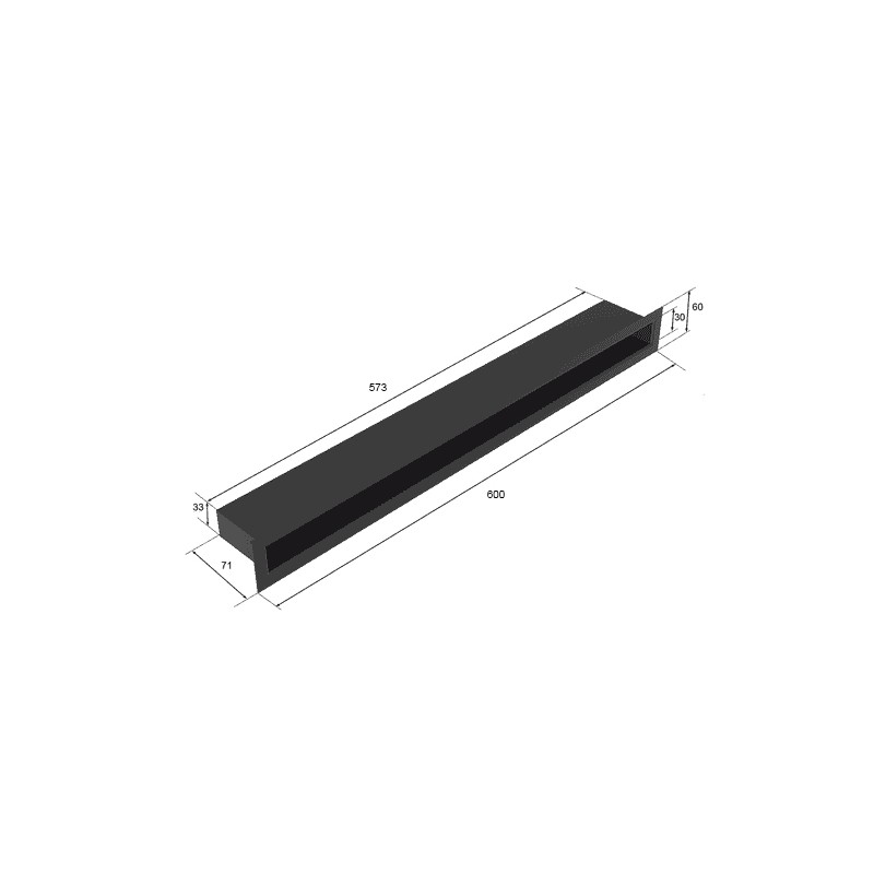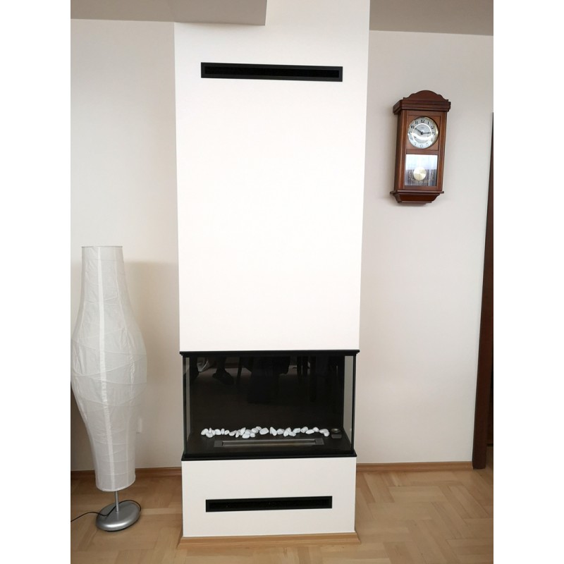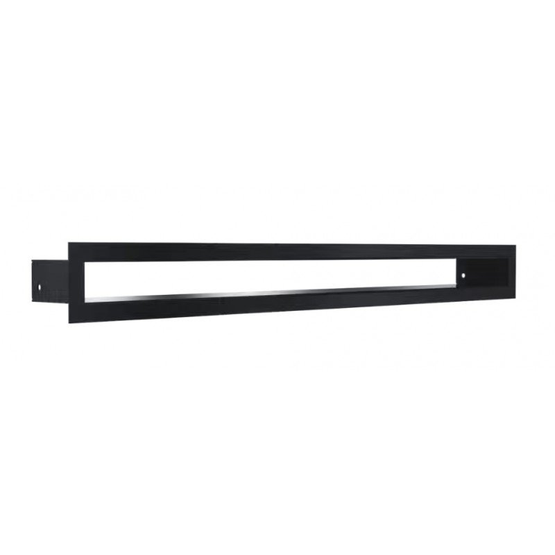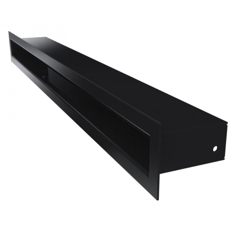 Czarna kratka wentylacyjna do stosowania w przypadku montażu biokominków narożnych z pełnymi szybami. Kratka o szerokości 60cm.