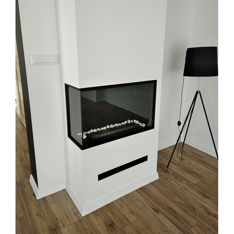 Można stosować z biokominkami narożnymi z pełnymi szybami o szerokościach 60cm, 80cm oraz 100cm.