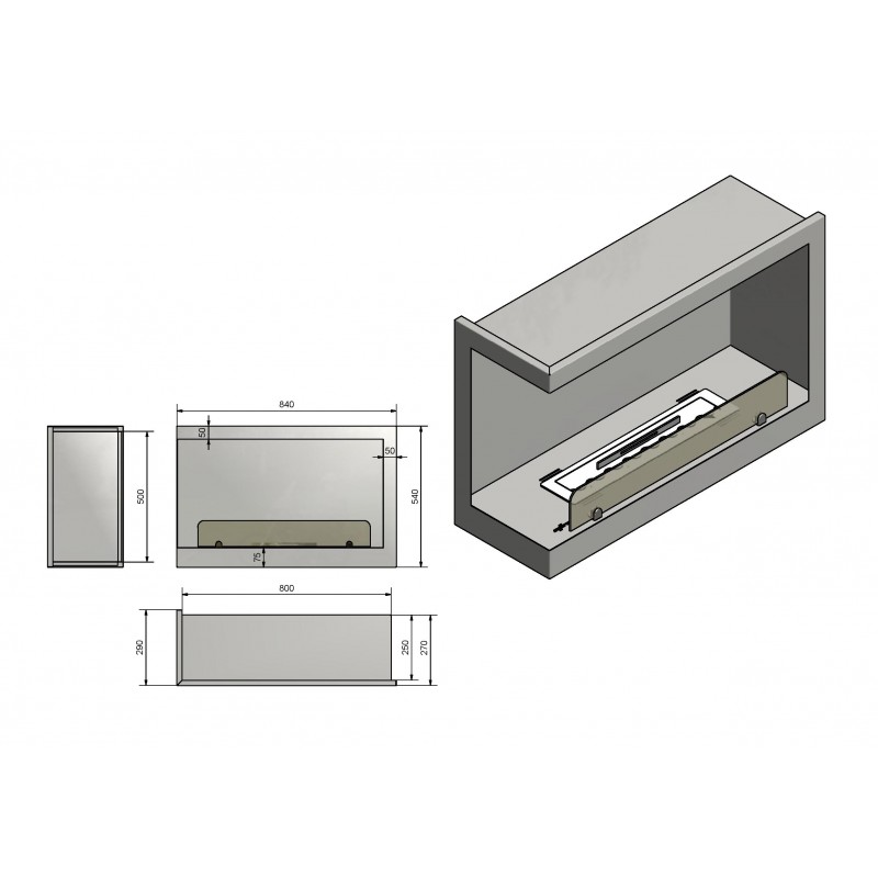 Biokominek został zaprojektowany do umieszczenia w zabudowie lub przygotowanym otworze, także w ścianie. W przypadku zabudowy z płyt gipsowo kartonowych zalecana jest ich wersja ognioodporna.