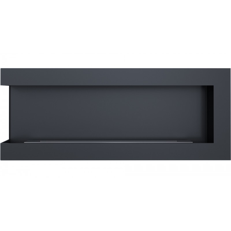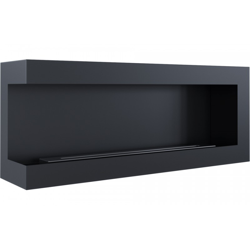 Biokominek narożny, z otwartym bokiem; wykonany ze stali lakierowanej farbą termoorporną w kolorze czarnym mat. Na odwrocie biokominka umieszczono uchwyty do zawieszenia na ścianie lub zabudowania. W zestawie są kołki rozporowe umożliwiające zawieszenie biokominka.
