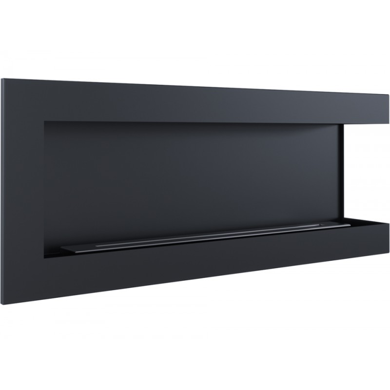 Biokominek narożny, z otwartym bokiem; wykonany ze stali lakierowanej farbą termoorporną w kolorze czarnym mat. Na odwrocie biokominka umieszczono uchwyty do zawieszenia na ścianie lub zabudowania. W zestawie są kołki rozporowe umożliwiające zawieszenie biokominka.
