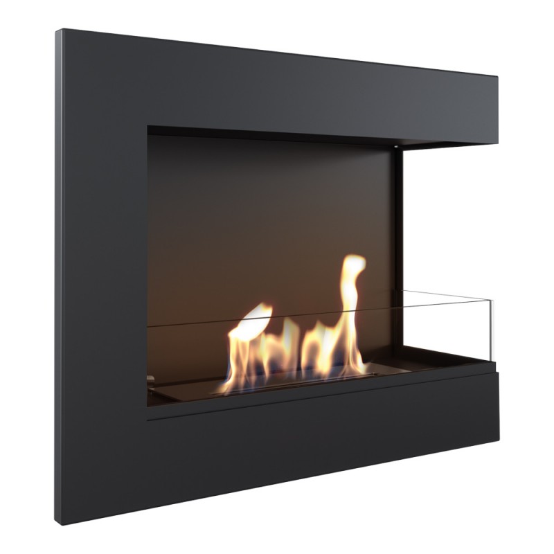 Narożny biokominek Delta o szerokości 60cm i otwartym prawym boku z dwoma szybami ochronnymi