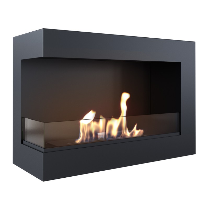 Narożny biokominek Delta o szerokości 70cm i otwartym lewym boku z szybami ochronnymi