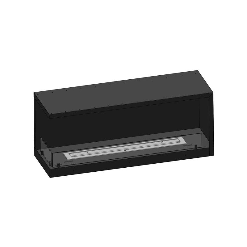 Konstrukcja biokominka wykonana ze stali kotłowej o grubości 3 mm lakierowanej proszkowo farbą termoodporną. Palenisko wykonane z jednego palnika typu prostego wykonanego ze stali nierdzewnej szczotkowanej o grubości 1,5 mm i szerokości 800mm. Pokrywa palnika wykonana ze stali o grubości 3mm, palnik o pojemności około 2 litrów.