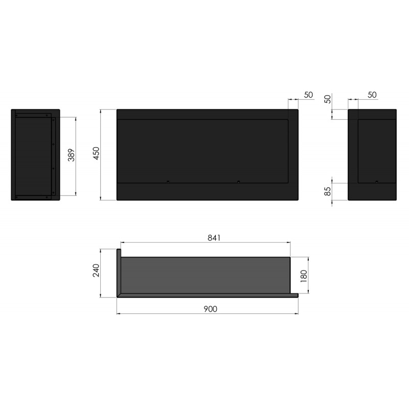 Wymiary: wysokość 450 mm, szerokość 900 mm, głębokość wnęki 180 mm. Waga 21 kg.