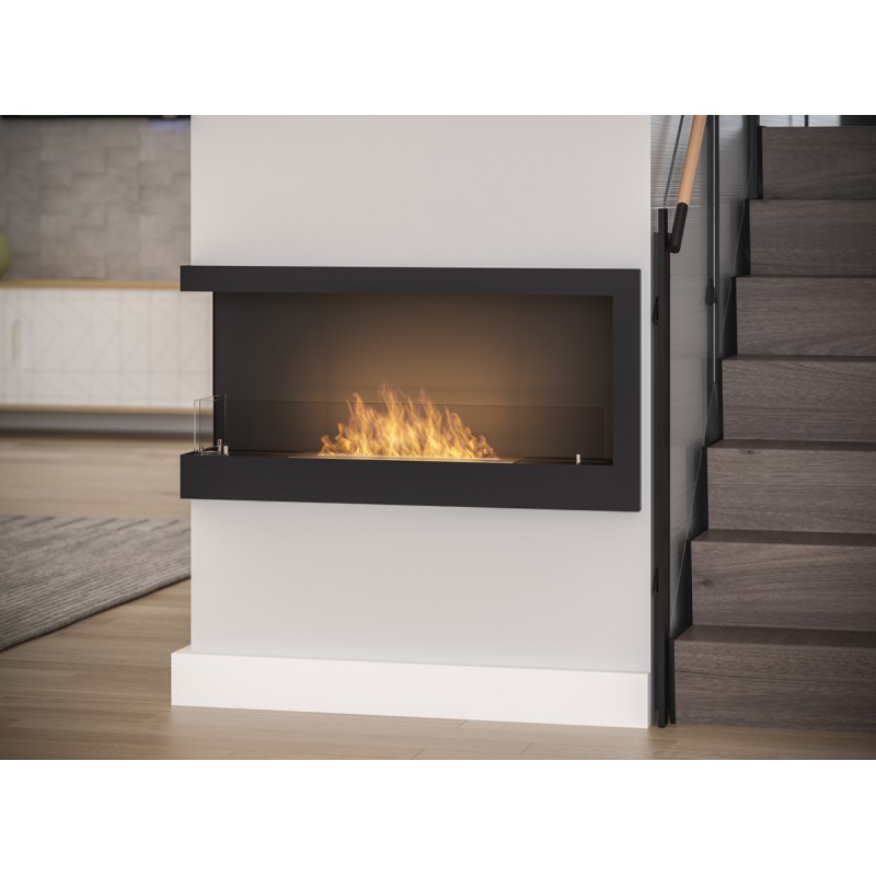 Wkład do zabudowy narożnej Corner o szerokości 90cm, wersja lewa. Model biokominka z dwoma szybami ochronnymi.