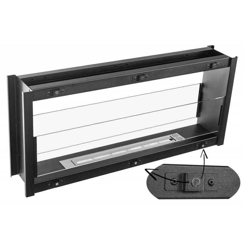 Niezwykle łatwy montaż, który opiera się na ramach frontowych, które mocowane są do konstrukcji za pomocą magnesów neodymowych. Biokominek świetnie się sprawdzi zarówno we wnętrzach klasycznych jak i nowoczesnych. Wystarczy osadzić lub wsunąć konstrukcję, przymocować do podłoża za pomocą uchwytów umieszczanych w otworze na palnik. Następnie pozostaje tylko umieścić palnik, wsunąć szyby i zamknąć konstrukcję przykładając ramy frontowe.