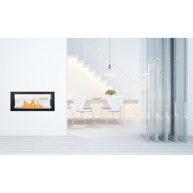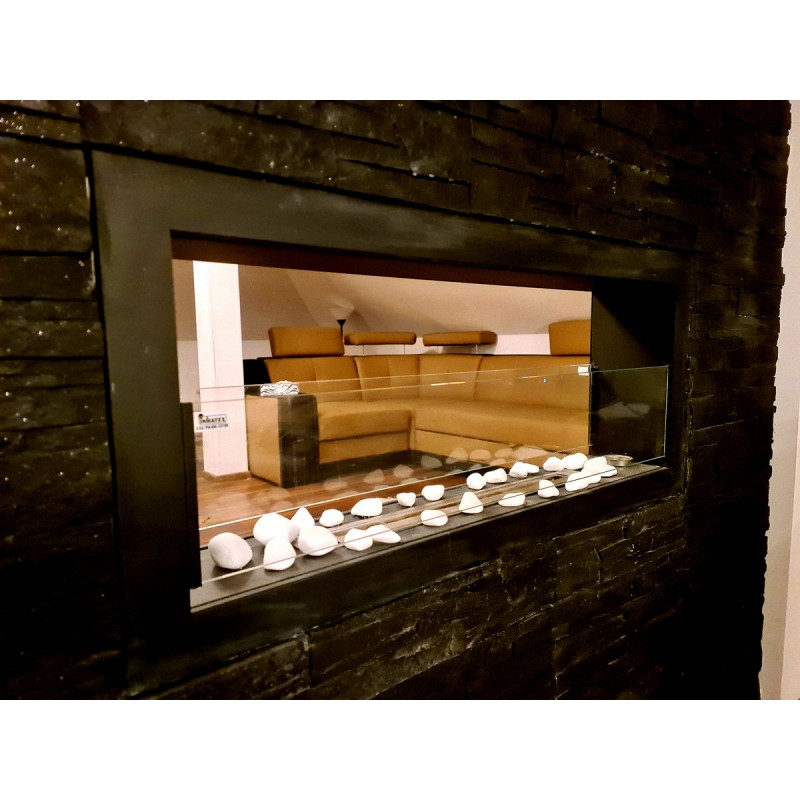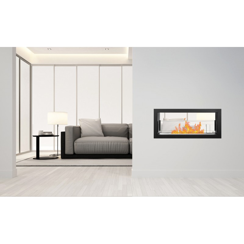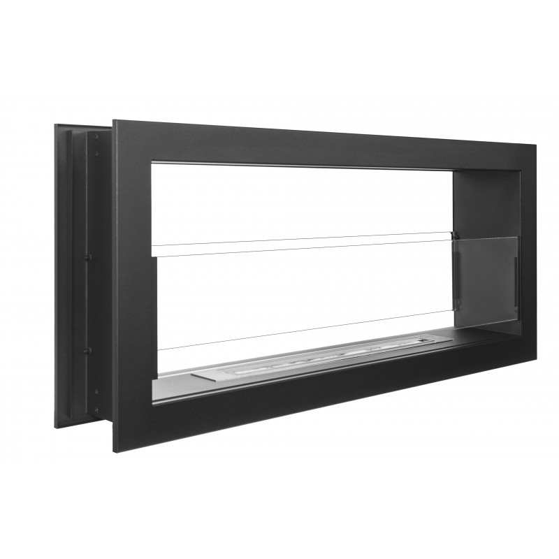Biokominek dwustronny Dual czarny matowy w rozmiarze 90x40cm z dwoma szybami ochronnymi z serii Nice-House