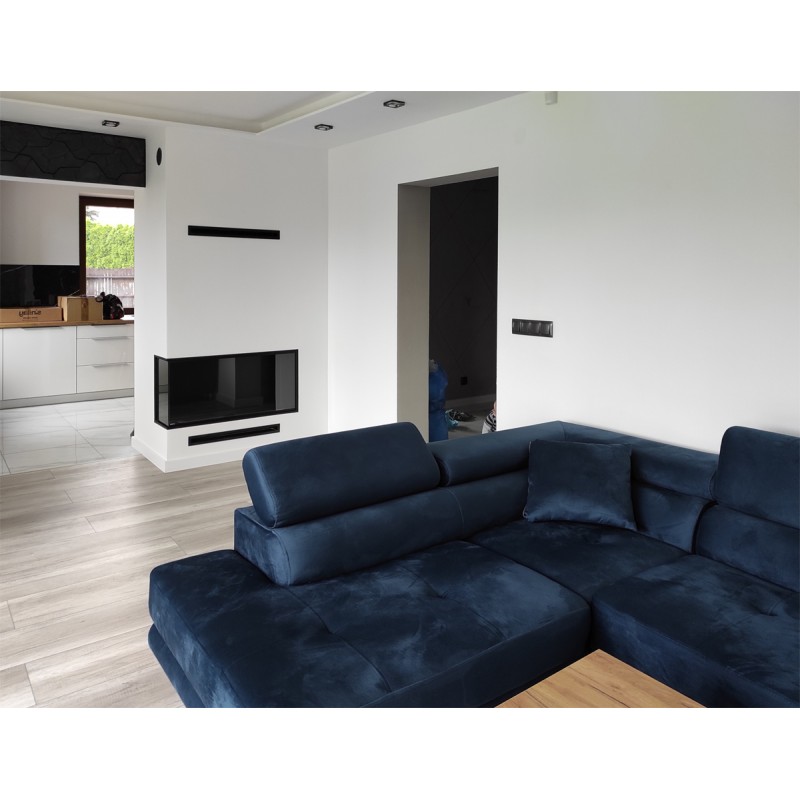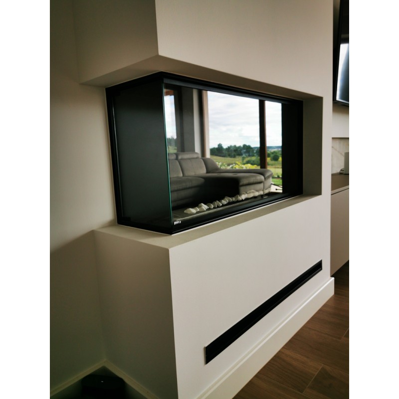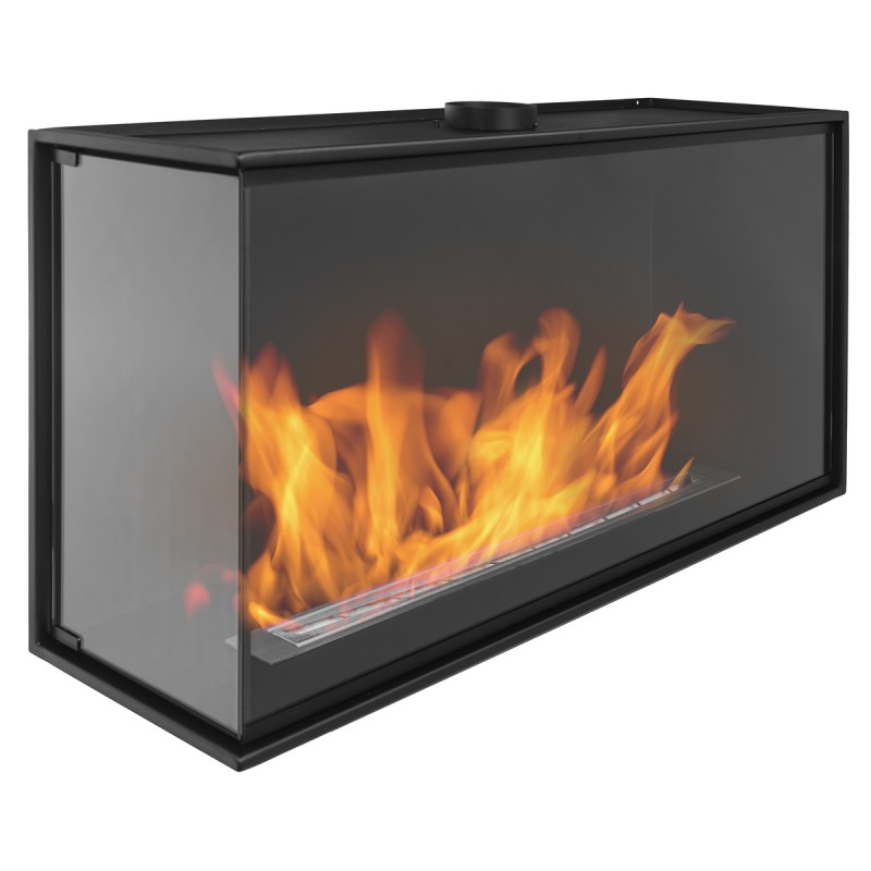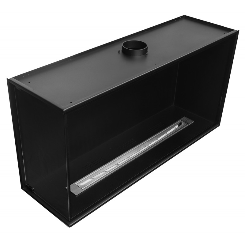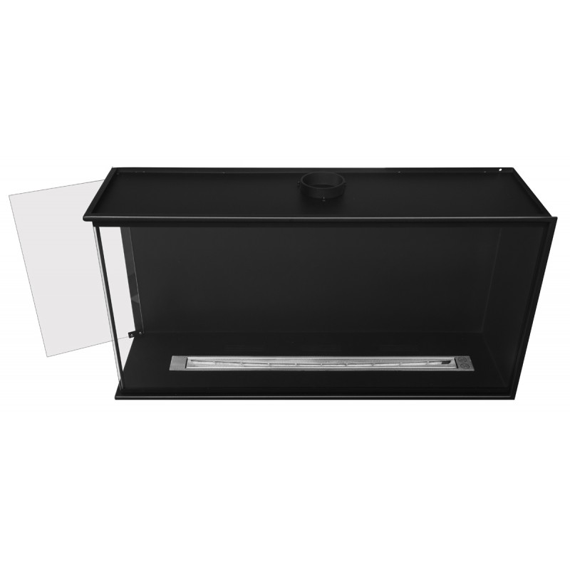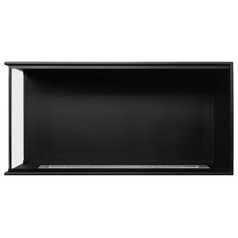 Wkład do zabudowy narożnej o szerokości 100cm, wersja lewa otwarta, biokominek posiada dwie szyby na całej wysokości.