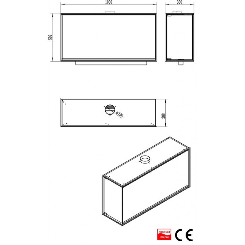 Wymiary: wysokość 502 mm, szerokość 1000 mm, głębokość 300 mm. Waga 30 kg.